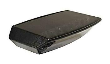 Black plastic housing with license plate light and smoked lens, E-marked.