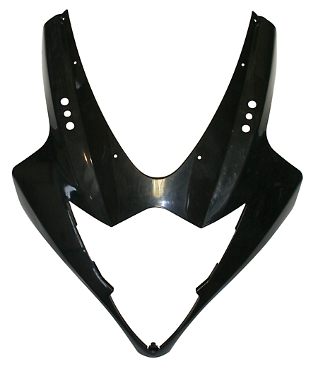 Upper frontfairing for GSX-R 1000, K5, 05-06, unpainted ABS, black or white. The fairing is made of high-quality ABS and has got all mounting brackets including the fixing points for the headlamps, cover and so on. All parts are black or white unpainted.