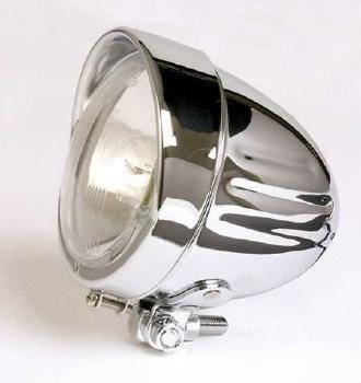 4-1/2 inch main headlamp, chromed metal housing for bottom mounting, with Bilux bulb 12 Volt 35/35 Watt and parking light, housing diameter 123 mm, depth without lens 70 mm, bulbs included