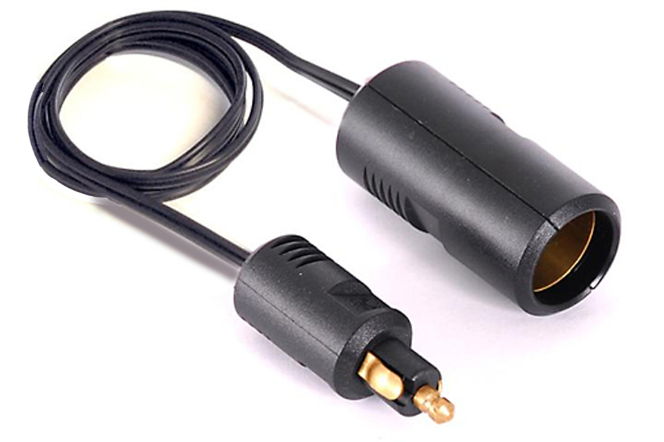 Cigarette Lighter receptacle with 100 cm cable and a connector for 12 V DIN power socket. The long cord helps to distribute power in the motorcycle cockpit suited to your individual needs, connects to the bikes 12 V electrical system. Features