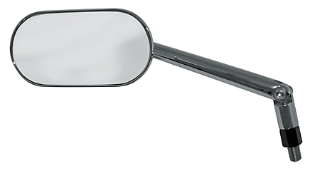 SHIN YO universal mirror AGILA, oval head, chromed or black, adjustable stem, incl. one extra adapter M 10 with L/Hand thread. No homologation. Not for use in public road!