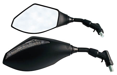 Handlebar mirror with LED indicator, housing black, mirror and indicator homologated, pair. Mirror dimension approx. 150 x 90 mm.
