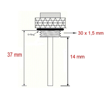 oil temperature gauge, thread x pitch: 30 x 1,5 mm, pin length: 14 mm, complete length with thread: 37 mm