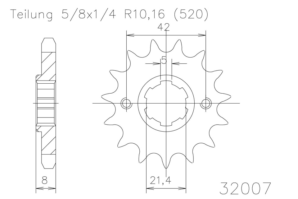Pinion gear 11 teeth steel 520er chain pitch (5/8x1/4)