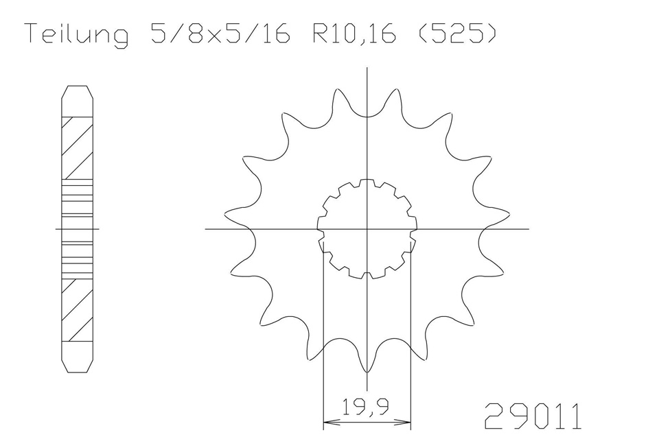 Pinion gear 16 teeth steel 525 chain pitch (5/8x5/16)