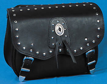 High-quality cowhide saddle bags made in Western Europe. Black, decorated with rivets, W x H x D = 38 x 29 x 16 cm, pair