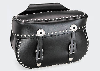 High-quality cowhide saddle bags made in Western Europe. Black, decorated with rivets, W x H x D = 43 x 30 x 19 cm, pair